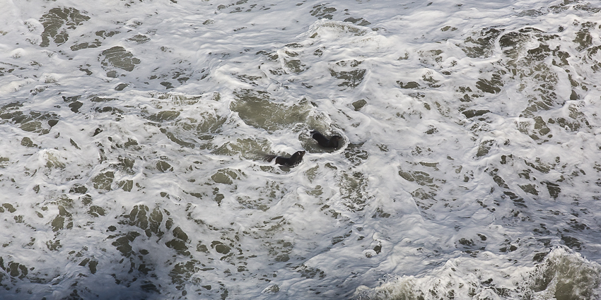 Als erstes Ziel auf dem Weg dorthin steuerten wir das „Seal Rock Recreation Area“ an. Dort gibt es Tide-Pools und ein kurzer Abstecher konnte nicht schaden. Vom Parkplatz aus waren es keine 5 Minuten bis zum Strand. Die Zeit war nicht optimal, aber den einen oder anderen Tidepool konnte man sich anschauen. Allgemein war der Strand mit seinen schroffen Felsen im Wasser recht beeindruckend. Von irgendwelchen Unterwassergetier fand sich aber keine Spur - weder Seeigel, Seeanemonen, geschweige denn Seesterne. Stattdessen bildete sich, vermutlich aufgrund der starken Brandung, irgendein leicht gelblicher Schaum der immer wieder an den Strand gespült wurde. Paul lies es sich natürlich nicht nehmen diesen auch näher zu begutachten. Es dauerte nicht lange und alle drei Männer standen zum Teil knietief im Schaum. Schaute aus, als hätten wir Stiefel an. Nach rund einer 3/4 Stunde ging es dann wieder zum Womo und wir duschten uns mit der Aussendusche die Schaum,- und Sandreste ab.