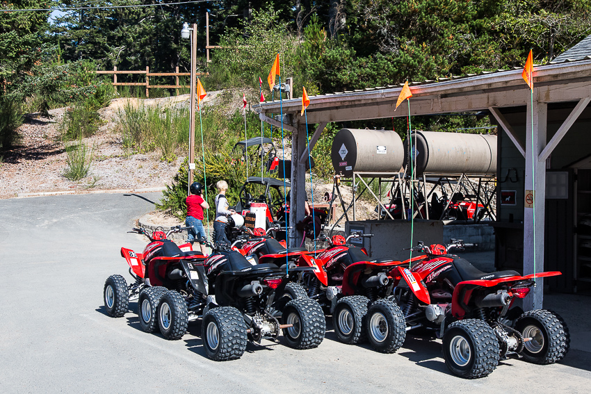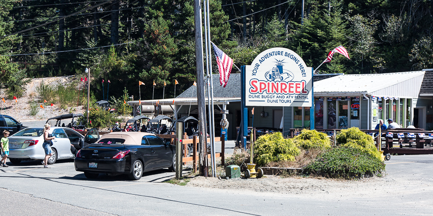 Schwer erleichtert fuhren wir noch bis zum ortsansässigen Visitor Center für das „Oregon Dunes National Recreation Area“. Diese empfahlen uns 3 verschiedene Anbieter für geführte ATV- Touren -  wir entschieden uns für „Spinreel“, 12 Meilen südlich von Reedsport. Kurze Zeit später kamen wir auch schon dort an und es war auch schon einiges los. Als wir uns nach den geführten Touren erkundigten, waren diese für den heutigen Tag leider bereits ausgebucht. Also entschieden wir uns doch für eine „selfmade“ Tour für 175$/ Stunde + 4$ für 2x Googles für die Kinder (Birgit und ich hatten unsere Sonnenbrillen) + 5$ Tankgebühren. Machte in Summe 184$. Ich musste schon ordentlich schlucken, aber wann bekommt man mal wieder die Gelegenheit mit einem ATV in riesigen Dünen umherzubrettern.