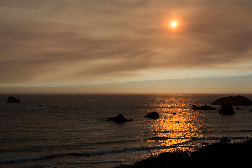 Im Wohnmobil gab es dann erst mal das eigentlich für mittag geplante Sandwich. Danach ging es weiter gen Süden, wir mussten noch ein paar Meilen machen denn morgen wollten wir ja den „Redwood Nationalpark“ besuchen. Unterwegs hielten wir immer mal wieder an einigen tollen „Scenic Views“ an, bis wir schliesslich gegen 18.45 am „Harris Beach State Park“ ankamen.