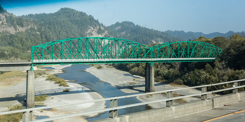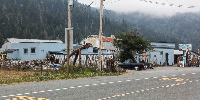 Wieder mal war es 09.00 als wir aufwachten. Ich weiß, wir sind im Urlaub und nicht auf der Flucht - aber irgendwie fehlt einem die Zeit dann doch meistens irgendwo. Während des Frühstücks ging es weiter mit dem langsamen „Reste vernichten“, der Kühlschrank musste ja bis zum Abgabetag am Montag weiter geleert werden. Der Himmel war bedeckt und Nebelschwaden zogen vom Meer heran. Das war also der berühmte Küstennebel, der sich dann hoffentlich im Laufe des Tages auflösen würde. Wieder, wie schon so oft die letzten Tage, kamen wir also erst um kurz vor 10 vom Platz. Der Weg bis zum „Redwood NP“ war aber Gott sei Dank nicht sooo weit, der erste Stopp wurde dann rund eine Stunde später kurz nach Klamath eingelegt.