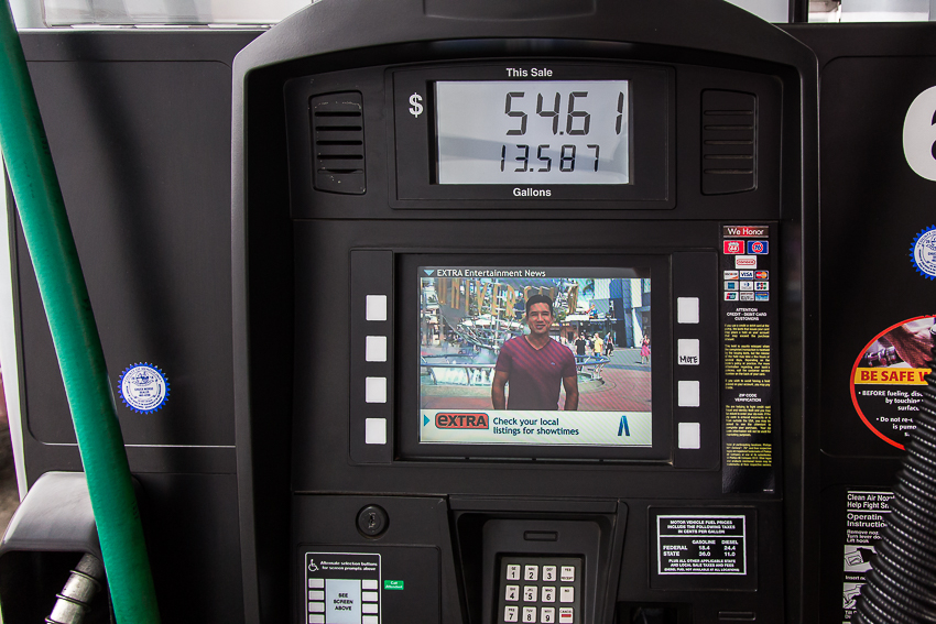 Da der Tank schon wieder fast am letzten Strich angekommen war, mussten wir in Fort Braggs tanken. Die Fahrt bis zur Zapfsäule dauerte rund 20 Minuten und ich tankte unser Womo für 2x95$ fast voll. Auf ein drittes Mal hatte ich keine Lust mehr.