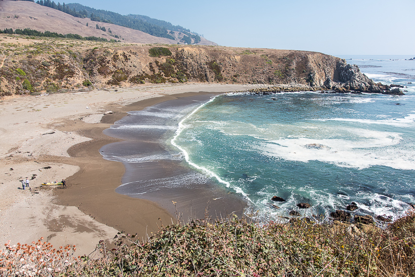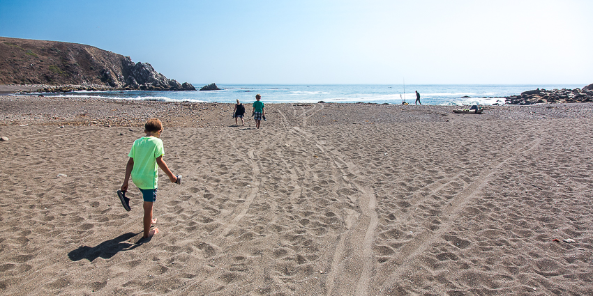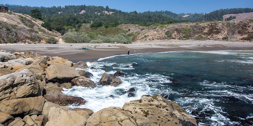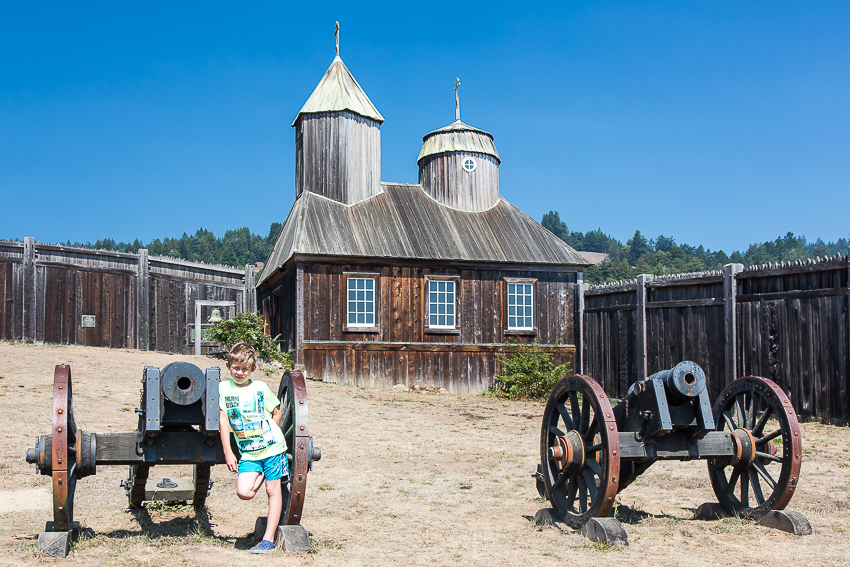 In „Fort Ross“ kam dann der gleichnamige „State Historic Park“. Da wir den Kinder versprochen hatten zwischendurch auch einen kleinen Strandbesuch zu machen, fuhren wir in den Park und zahlten die 8$ Parkeintritt. Wir besuchten das kleine Museum einer ehemaligen russischen Kolonie und ich ging mit Tom das „alte“ Fort besuchen. Na ja, was die Amis eben für alt und historisch halten. Einen zweiten Besuch würden wir nicht mehr machen, aber da unser Grundmann Reiseführer nichts negatives schrieb, probierten wir den Park halt aus. Birgit ging derweil mit Paul schon mal Richtung Strand. Nach 20 Minuten trafen wir uns dort, die „Schönheit“ dieses kalifornischen Standabschnittes hielt sich aber in Grenzen. Die Kinder beobachteten lieber 2 Angler, die in der kleinen Bucht ihr Glück versuchten. Auf direkten Kontakt mit Wasser hatte irgendwie keiner der beiden mehr Lust. Was den Strand anging kamen dann einige Zeit später wesentlich schönere Gelegenheiten zum Baden. Aber jetzt kannten wir eben auch das alte russische „Fort Ross“.