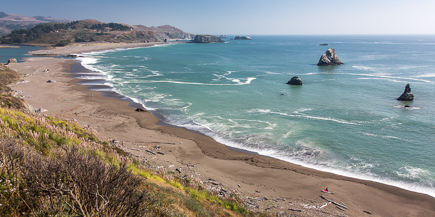 Um 15.30 gingen wir dann zurück zum Parkplatz ins Womo. Die tiefgefrorene Pizza gab es - da der Ofen ja nicht funktionierte - aus der Mikrowelle. Den Kindern schmeckte es laut eigenem Bekunden super lecker, aus der Ferne betrachtet sah das Teil super lätschig aus. Na ja, wer macht schon Pizza in der Mikrowelle. Dann fuhren wir wieder den Highway 1 immer weiter Richtung Süden. Vorbei an kleinen Nestern wie Mendocino (da gibts doch ein Lied drüber) und Bodega Bay (dort wurde Alfred Hitchcocks „Vögel“ gedreht). Nach Bodega Bay macht die „Eins“ einen kleinen Schlenker ins Landesinnere um dann wieder am „Point Reyes National Seashore“ vorbei zu führen.