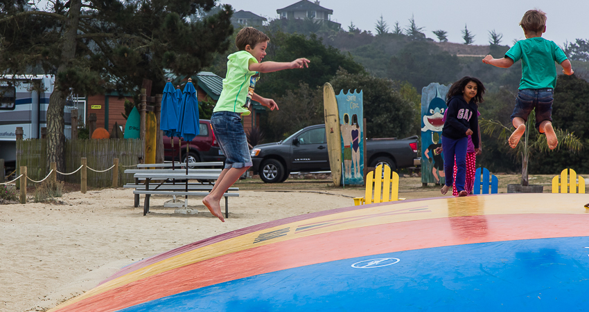 Aufgrund des doch etwas aktiveren Campgrounds, einem KOA Holiday, waren wir heute schon um 07.45 wach. Nach einer weiteren 3/4 Stunde komatösen dahinsiechens, gab es das vorletzte Frühstück im WoMo. Der Kühlschrank hatte sich mittlerweile doch schon merklich geleert und zeigte ein relativ trostloses Bild. Trotzdem langte es noch einmal für Toast, Bagels, Lucky Charms und „frischen“ O- Saft mit „Pulp“. Nach dem Frühstück gingen Tom und Paul noch einmal auf Tour und hüpften auf einem "Big Bouncer"- sowas ähnlichem wie einem Trampolin.