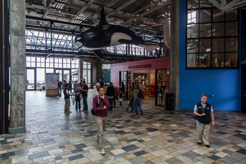 Um kurz vor 10.00 machten wir uns dann auf Richtung „Monterey Bay Aquarium“, das Navi zeigte noch knappe 50 Minuten Fahrzeit an. Ohne großen Verkehr, es war ja Sonntag, kamen wir dann kurz vor 11.00 am Aquarium an. Allerdings mussten wir uns erst noch einen Parkplatz suchen und landeten daher etwas abseits in einer Seitenstraße, 10 Gehminuten vom Aquarium entfernt. Der Eintritt war mittlerweile ganz schön happig, unser Grundmann Reiseführer von 2007 hatte noch läppische 25$/ Erwachsenen geführt. Mittlerweile waren es 39,95$/ Erwachsener. Aber das Monterey Aquarium ist das - als eines der besten Aquarien Nordamerikas - locker wert.