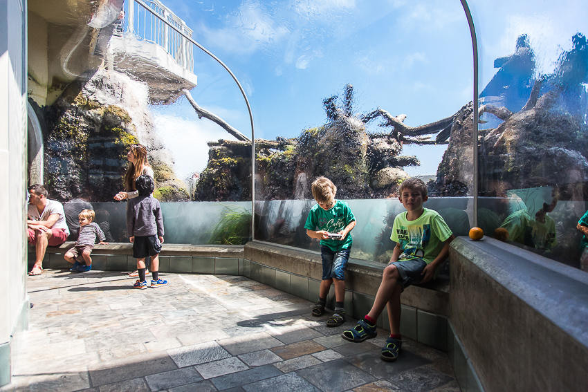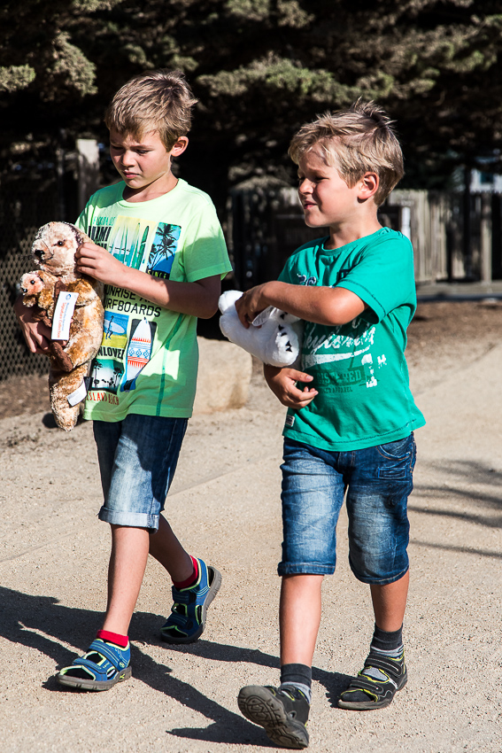 Weiter ging es über die Seeotter und Pinguine bis zu den schön gestalteten Spielplätzen für Kinder. Zwischendurch aßen wir in der Cafeteria ein Sandwich und etwas Süßgebäck. Im Gift-Shop kauften sich Tom und Paul dann jeder noch ein Kuscheltier vom Taschengeld und um 16.45 waren wir dann durch, erschöpft aber glücklich und zufrieden. Im Grundmann wird eine Besuchszeit von rund 2 -3 Stunden empfohlen - wir waren fast 6 Stunden unterwegs. Ohne Kinder oder „Lust aufs Fotografieren“ mag man sicherlich schneller durchkommen, aber bei uns traf beides aufeinander und so ging dann auch mal fast ein halber Tag drauf.