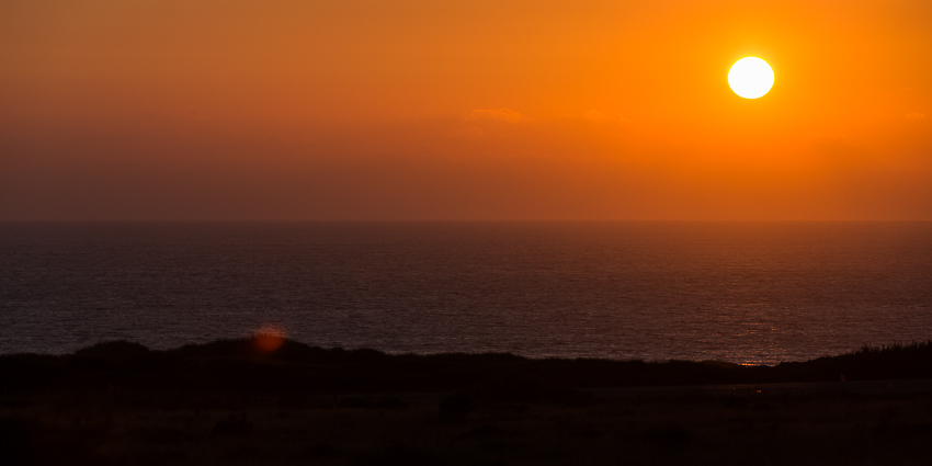 Dort kamen wir dann gegen 17.30 an und überlegten noch kurz, welchen letzten Campground des diesjährigen Urlaubs wir ansteuern sollten. Nach 5 Minuten hatten wir uns für den KOA „Santa Cruz North/Costanoa„ entschieden. Laut Navi zwar eine Fahrt von knapp 2 Stunden, letztendlich ging es aber doch wesentlich fixer und wir kamen um 19.00 dort an. Per Night Check- In entschieden wir uns für Stellplatz C54 im „Coastal Village- Loop“. Ich wollte noch kurz zum Strand, aber außer mir hatte keiner mehr recht Lust drauf. Also machte ich mich alleine auf und lief erst mal 70 Meter durch den Pet- Walk hinter einer kleinen Düne. Das war eigentlich nicht der Original Pet- Walk, aber für die meisten Hunde Besitzer war dies wohl die einfachere Lösung, denn wo man hinschaute lagen Tretminen. Auf dem Original hätten die lieben Hunde Besitzer die kleinen Häuflein nämlich mit Hilfe einer kleinen Plastiktüte selbst entfernen müssen. Der Weg zum Strand erwies sich dann allerdings als doch zu umständlich und so blieb es bei ein paar Sonnenuntergangsbildern - geschossen vom inoffiziellen Pet- Walk :angst:. Dann lief ich wieder zurück zum Wohnmobil.