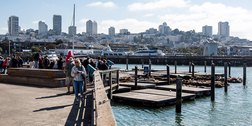 Die Kinder hatten noch immer nichts gegessen und auch Birgit und ich hatten schon wieder Hunger. So landeten wir im benachbarten In&Out Burger und holten uns für schlappe 30$ vier Burger mit Pommes und Coke. Ja, das hatten wir auch schon mal billiger. Gut gestärkt ging es dann zum Pier 39, der heilige Gral der Touristenabzocke. Aber an den stinkenden und bellenden Seelöwen sowie den zum Teil doch recht guten Straßenmusikanten hatten die Kinder dann großen Spaß. Wir blieben bis 17.30 dann gingen wir zurück ins Hotel.