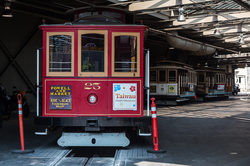 Die Fahrt führte uns weiter ins „Cable Car Museum“. Wir mussten knappe 10 Minuten nach einem Parkplatz Ausschau halten, wurde aber relativ günstig nur 150 Meter vom Museum entfernt fündig. Ich weiß, San Francisco „erläuft“ man, aber: 1. saßen wir eh schon im Auto und 2. muss man mit Kindern manchmal auch Kompromisse eingehen.