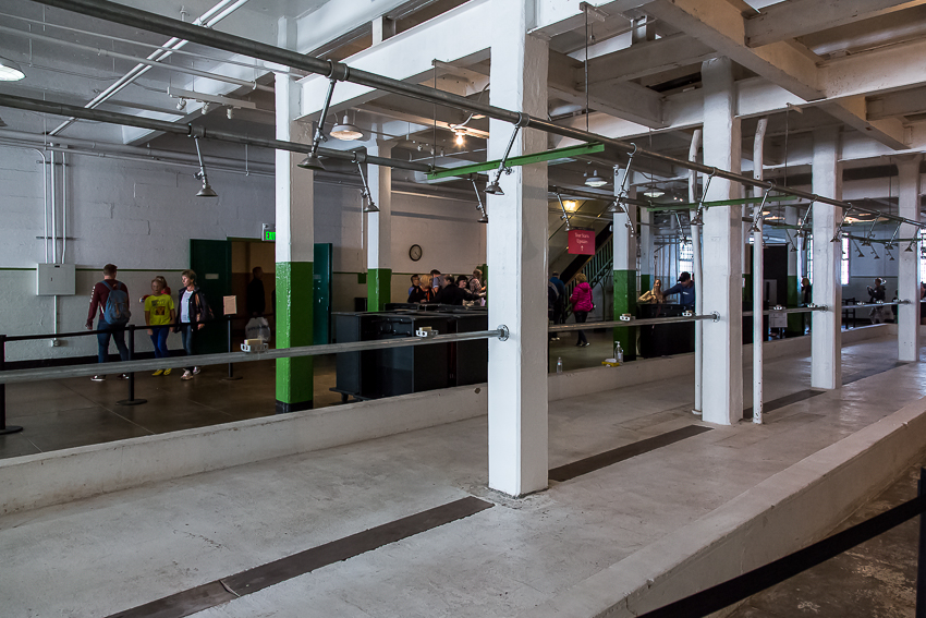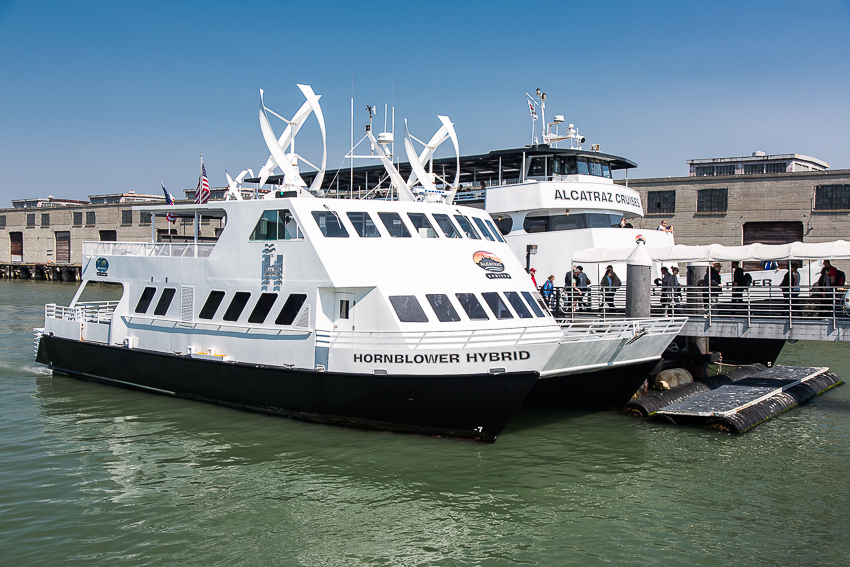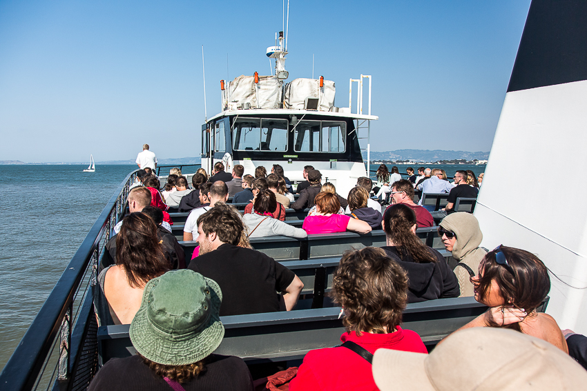 Tom und Paul verdrückten noch zusammen eine Zuckerwatte, dann hieß es auch schon „Boarding“. Mit 5 Minuten Verspätung legte um kurz nach 16.00 die Fähre Richtung Alcatraz ab. Für heute war es die letzte der Tagesfahrten, danach gab es nur noch zwei Specials mit einer Nachtführung. Die Fahrt bis zur Gefängnisinsel dauerte ungefähr eine viertel Stunde und man hatte schöne Blicke auf die Skyline von San Francisco oder das immer näher kommende „Alcatraz“. Nach dem „von Board gehen“ führte uns der Weg hinauf bis zum „Maintract“. Dort gab es als erstes die Audioguides in der entsprechenden Sprache. Die Guides waren im Preis für den Besuch der Insel mit beinhaltet. An einem bestimmten Punkt angekommen drückte man den gründen Startbutton des Audioguides und wurde dann super informativ und äußerst spannend durch denn kompletten Zellentrakt geführt. Das Ganze dauerte ca. eine Stunde. Im Giftshop signierte übrigens „William G. Baker“, Alcatraz Häftling Nummer 1259, sein Buch. Im Nachhinein ärgerte es mich dann doch etwas, nicht sein Buch für 20$ inklusive Signatur gekauft zu haben. Er ist einer der letzten Überlebenden von Alcatraz und diese Gelegenheit wird sich für uns wohl nie mehr ergeben. Aber das Buch hätten wir vermutlich eh nicht zu Ende gelesen und 20$ für ein Autogramm wollten wir dann auch nicht ausgeben. Danach erkundeten wir noch auf eigene Faust einen Teil der Insel bis wir mit der Fähre um 17.55 wieder zurück in die Freiheit fuhren.