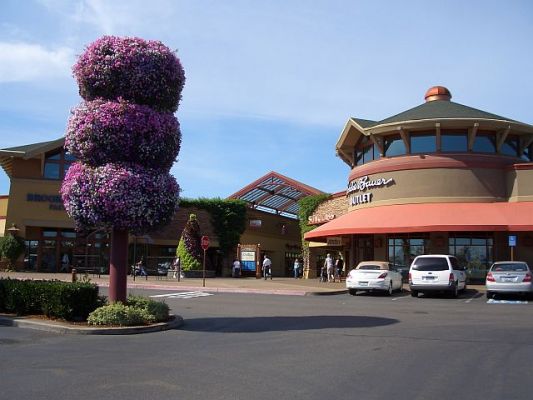 Wir fahren zunächst an Portland vorbei um diesen traumhaft sonnigen Tag in der klimatisierten Kühle der Woodburn Company Stores zu verbringen. Um dem Wetter zumindest einen kleinen Tribut zu zollen, widme ich wenigstens dem Blumenschmuck auf dem Parkplatz 5 Minuten.