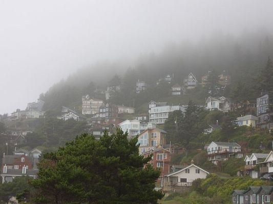 Nachdem wir den wunderbar sonnigen Tag gestern im Outlet verbracht haben, begrüßen uns heute morgen dunkle Wolken und es ist ziemlich drückend. Nach einem kurzen Bummel durch Portland fahren wir weiter an die Küste. Und jetzt beginnt es auch richtig heftig zu regnen. Schade, denn die Fahrt durch den Wald an die Küste wäre eigentlich sehr hübsch. Nach rund anderthalb Stunden erreichen wir Tillamook – zwar kann man hier eine Käsefabrik besichtigen (Tillamook Cheese gibt es hier in alle Ausprägungen in den Supermärkten), aber wir beschließen nach einem kurzen Stopp in der Touriinf. gleich nach Ocenside weiterzufahren.