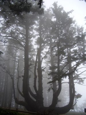 Ein kurzer Spaziergang durch den dampfigen Wald führt uns zum Octopus Tree. Klar, es ist feucht und nebelig, aber die Stimmung und Landschaft ist (gerade dadurch) besonders reizvoll.