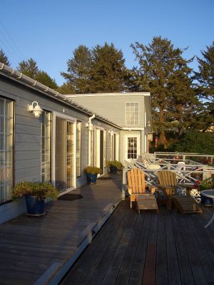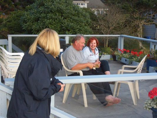 Zurück in Yachats genießen wir die Abendsonne mit einem Sundowner auf der Terrasse.