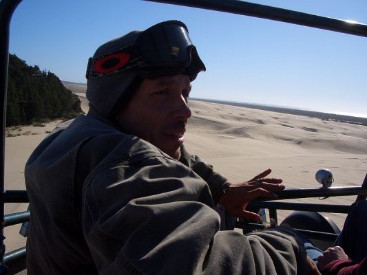 Der Typ hat einen genialen Gangsta-Rap-Akzent, der mich so beeindruckt, dass ich zwei Tage so spreche (sehr zur Freude von Herrn Barb). Die Tour ist zugegebenermaßen ein Riesenspaß, ich wundere mich nur, dass es nie zu Zusammenstößen zwischen uns und den zahlreichen Motorrädern kommt, die dauernd zwischen den Dünen auftauchen. Am Ende sehen wir noch einen Koyoten.