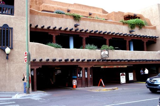 Gegenüber der Kirche finden wir das schönste Parkhaus, das wir je gesehen haben: im Adobe-Stil.