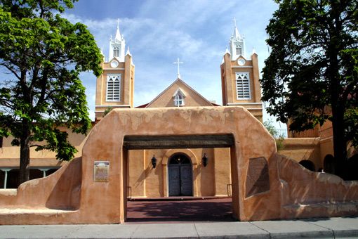 Am Ende der historischen Route 66 erwartet uns die Old Town von Albuquerque mit der idylischen  Plaza als Mittelpunkt. Wir schlendern durch die zahlreichen Souverniershops in den alten Gebäuden. Stöbern hier und wuseln dort. Wir besichtigen die San Felipe Neri Church