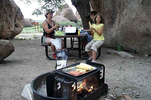 Essen auf Rädern....Richtig – wir sind wieder in Arizona und müssen noch die Zeit umstellen. Gleich nebenan in einem urigen Coffeeshop lassen wir uns nieder. Hier gibt es Kaffee (was sonst?), Cookies und Eis. Während die Bedienung unsere Bestellung bearbeitet schauen wir uns im Laden um. Alte Möbel, ausgebleichte Rinderschädel, Schallplatten aus den Fünfzigern, Klamotten von der Oma, signierte Filmstar-Fotos und und und. Ein kleiner Trödelmarkt. Wir setzen uns auf den hölzernen Gehsteig vor dem Haus, schauen den vorbeifahrenden Autos zu und planen den weiteren Tagesverlauf. Da es noch nicht einmal Mittag ist beschließen wir einstimmig, heute noch Tombstone zu besuchen, was eigentlich erst für den nächsten Tag geplant war. So haben wir morgen mehr Zeit für den Chiracahua Nationalpark.