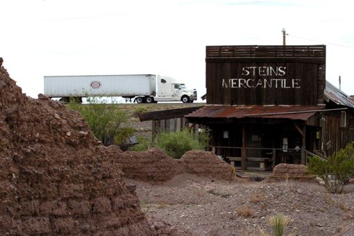 Ghost Town Steins mit der Interstate im HintergrundOhne weiteren Zwischenstopp fuhren wir nach Wilcox. Der Ort erinnert stark an die Städtchen entlang der Route 66. In der Oldtown leerstehende Geschäfte und heruntergekommene Motels – an der Interstate-Abfahrt Motel-Neubauten der bekannten Ketten und Tankstellen. Wir wählen für uns das Super 8 aus. Ein Grund war sicherlich der Indoor-Pool.