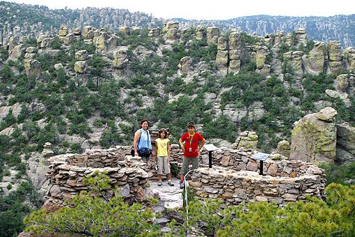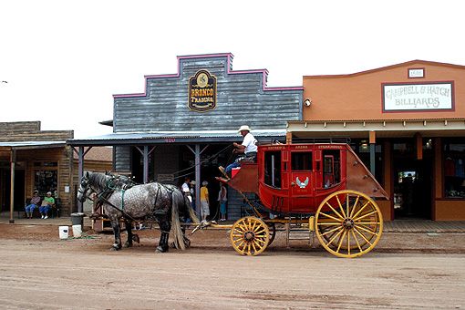 Coffee-Shop und TrödelmarktZwischen Wilcox und Benson quert der Interstate 10 eine sehr schöne Felsenlandschaft (Texas Canyon) die uns am die Alabama Hills und an den City of Rocks SP erinnert. Leider fehlt uns die Zeit anzuhalten – Tombstone, „The town too tough to die“, wartet. In der berühmten Wild-West-Stadt ist die Haupt-Touristen-Straße, die Allen Street, für den Autoverkehr gesperrt und auch nicht asphaltiert. Lediglich mehr oder weniger historische Postkutschen fahren hier mit den Besuchern auf und ab. Auf den hölzernen Gehsteigen begegnen wir Darstellern aus den Shows in ihren alten Kostümen. Trotz ihres wilden Aussehens, sind sie doch recht nett und freundlich im Gespräch: Woher ? Wohin ? Besucht doch unsere Show ! Die Geschäfte führen die einschlägigen Artikel: Cowboyhüte, Sporen, Lederaccessoires usw. Besonders angetan hat es mir der Buchladen, der ein reichhaltiges Sortiment an Wild-West- und Filmliteratur führt.