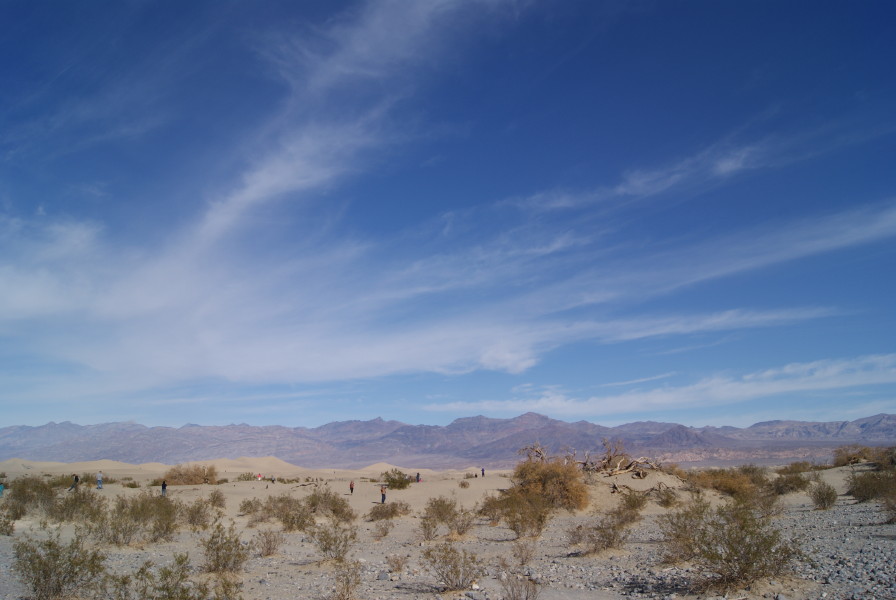 In Stovepipe Wells berappen wir die 20 fälligen Dollar NP-Eintritt und fahren weiter Richtung Furnace Creek. An den Mesquite Sand Dunes sind jede Menge Leute unterwegs.. da wollen wir nicht auch noch zu den Dünen laufen und fahren weiter.