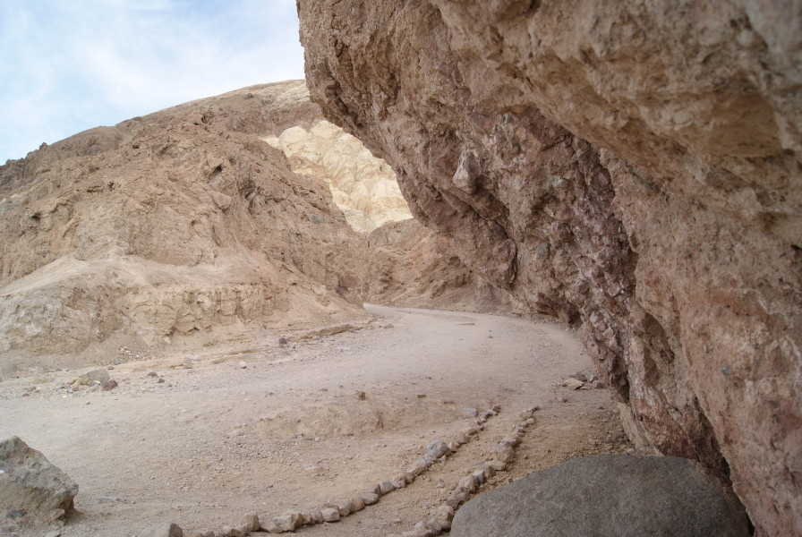 Am Golden Canyon ist kein Parkplatz mehr zu bekommen. Der Hase ist aber ein Parkplatz-Erfinder und quetscht den Escape noch irgendwohin. Wir laufen ein Stück und sind... nun ja, irgendwie enttäuscht. Vielleicht sind wir mittlerweile verwöhnt oder übersättigt..? Oder liegt es daran, daß die Farben so langweilig sind. Wie auch immer, wir gehen nach wenigen Metern wieder zurück zum Wagen.