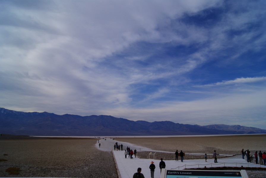 Im Badwater Basin dann auch wieder viele Leute unterwegs. Komisch, wir sind 85 Meter unter dem Meeresspiegel.. Das und die eigenartige Salzsee-Landschaft haben schon was besonderes.
