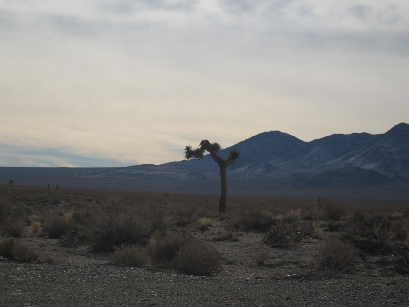 Jetzt wird die Gegend wieder beeindruckender. Vor allem wegen ihrer Weite.. Und Joshua Trees gibts auch