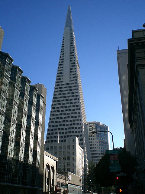 Dann geht es schon zu Fuss weiter zum Treffpunkt der "North Beach by Night" Führung der San Francisco City Guides, die um 19.00 Uhr beginnt. Unterwegs schiesse ich noch schnell ein Foto der "Transamerica Pyramid".