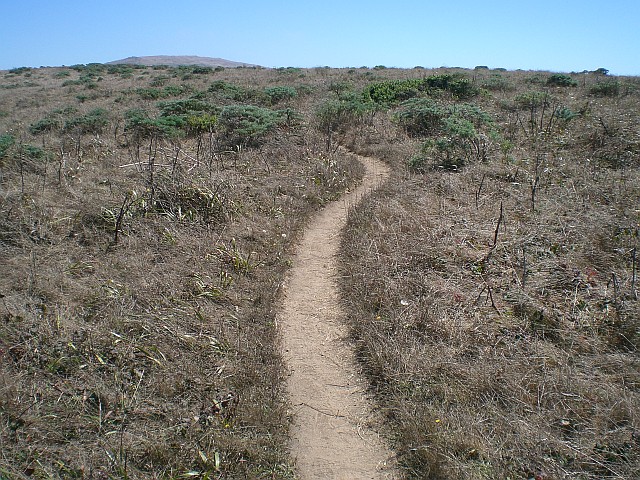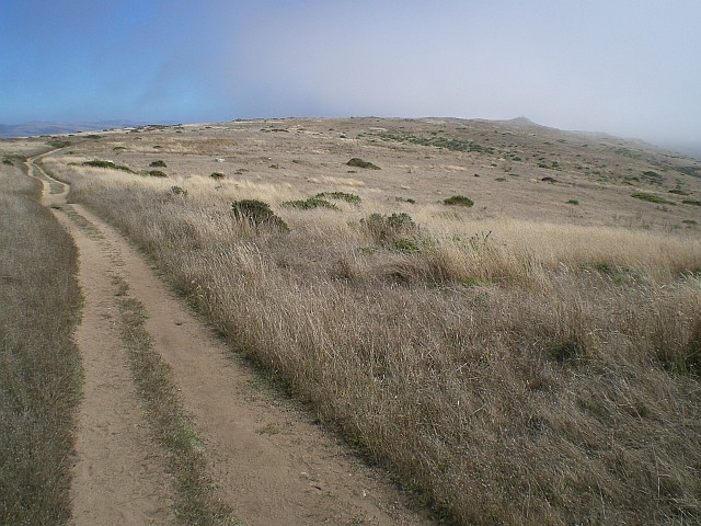 Die Route führt mich auf der CA-1 vorbei beim ebenfalls komplett eingenebelten Stinson Beach bis zum Trailhead des Tomales Point Trails auf der nördlichen Spitze der Point Reyes National Seashore, wo ich bis zum Tomales Point und zurück joggen möchte. Der Wanderweg ist ca. 16 km lang (hin- und zurück), schön coupiert, verläuft über grasige Hügel mit tollem Aussichten links und rechts aufs Meer und endet am Schluss an wunderschönen Klippen.