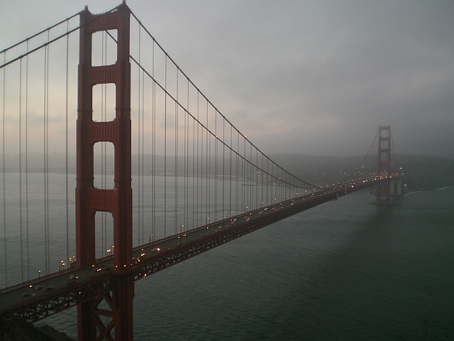 Das Wetter in San Francisco ist herrlich, keine Wolke am Himmel auszumachen und obwohl die Golden Gate Bridge gerade mal zwei Meilen vom Hotel entfernt ist, liegt sie komplett im Nebel! Kaum bin ich runter von der Brücke herrscht wieder eitel Sonnenschein. Nur die Brücke selber liegt im Nebel, sonst nichts. Verrückt! Ist wohl nichts mit den Golden Gate Bridge Fotos aus der Nähe.