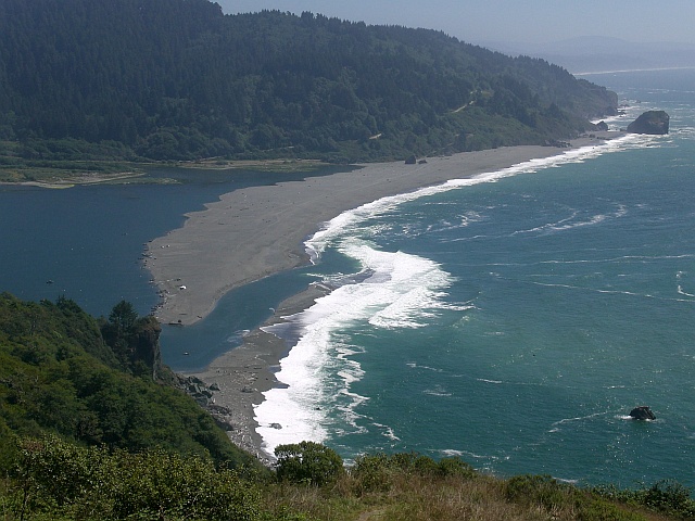 Mit vollem Bauch geht die Fahrt weiter zu den Redwoods National and State Parks, ein buntes Gemisch aus verschiedenen Parks, die sich allesamt die Redwoods im Mittelpunkt haben. Vorher wird in Eureka aber noch einmal der Tank meines Trailblazers gefüllt. Meine Fahrt führt mich erst zum Visitor Center, wo ich mir eine Karte des Parks abhole. Mit einem kleinen Umweg über den Newton B. Drury Scenic Parkway, auf dem ich mir für die Rückfahrt schon mal die interessanten Bäume merke, fahre ich vom Visitor Center direkt zum Mouth of the Klamath River Overlook. Was sich mir da bietet ist zwar recht nett, aber nicht so beeindruckend wie die Bilder, die ich vorab schon schon im Internet bestaunt habe.