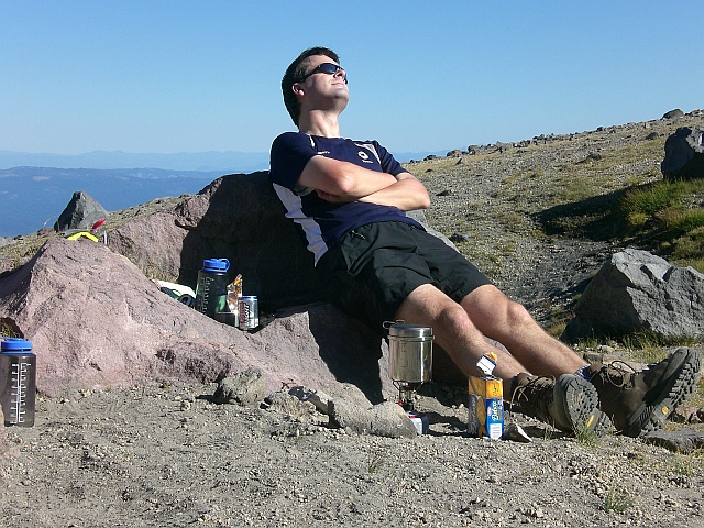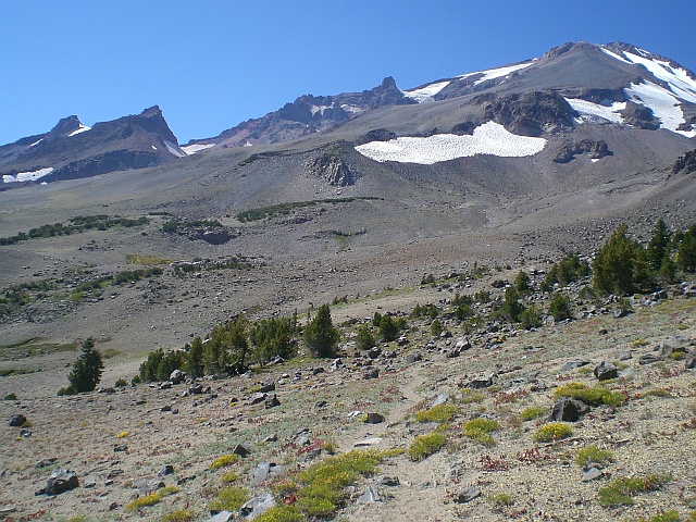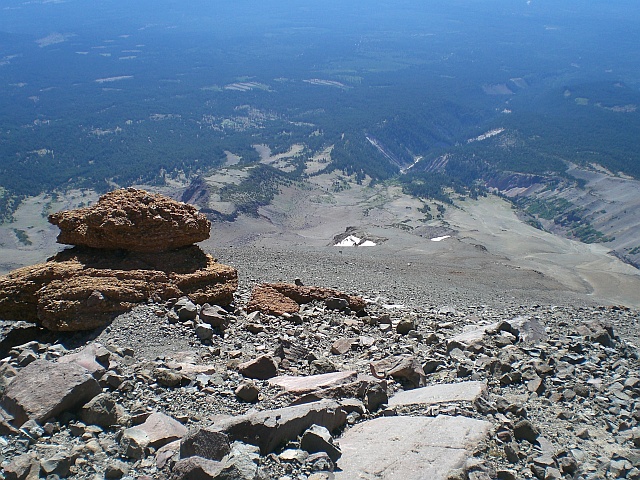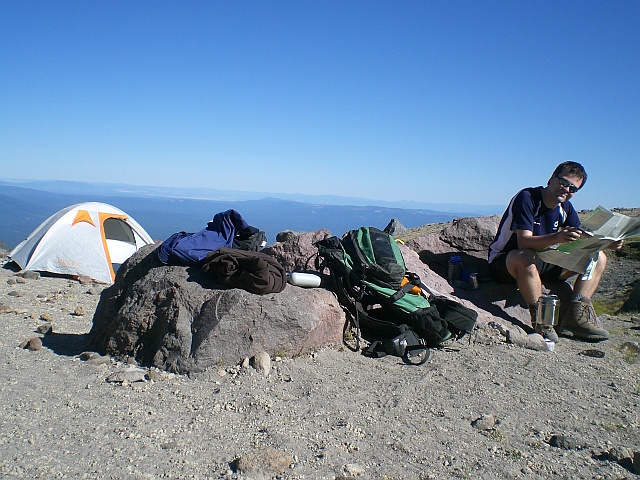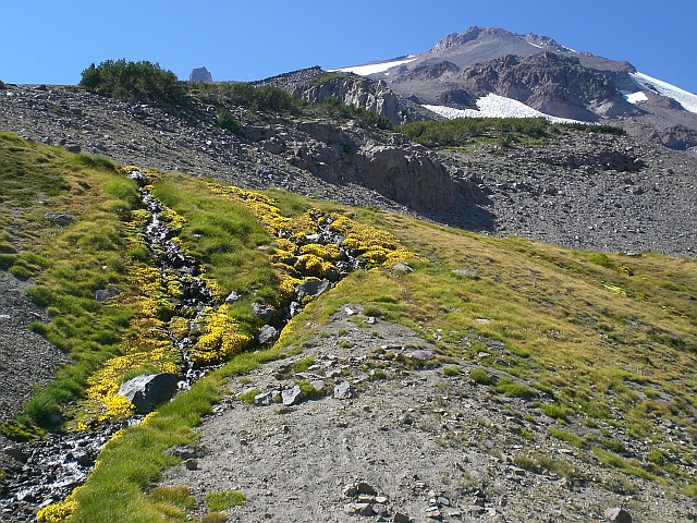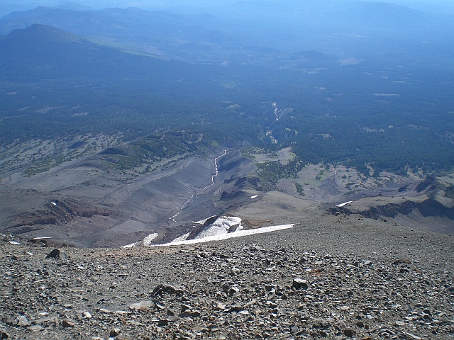 Den Abstieg nehme ich gemütlich, der Ärger über den nicht erfolgreichen Aufstieg ist inzwischen fast verschwunden und bei sämtlichen entgegenkommenden Wanderern ist eine 10-minütige Zwangspause angesagt, weil die ausführlichst über die Route informiert werden möchten. Dabei erfahre ich, dass die beste Saison für eine Besteigung Ende Mai, Anfang Juni sei. Da müsse man nur die Steigeisen montieren und kann dann technisch einfach bis zum Gipfel aufsteigen. Das einzige Problem wäre das Wetter, denn das sei dann noch nicht so konstant wie Ende August / Anfang September. In meinem Kopf reift natürlich sogleich eine Tour für 2009, denn es gibt noch einige andere interessante Vulkane der Kaskaden-Kette auf meiner To-Do Liste und mit dem Mount Rainier habe ich schliesslich auch noch eine Rechnung offen.