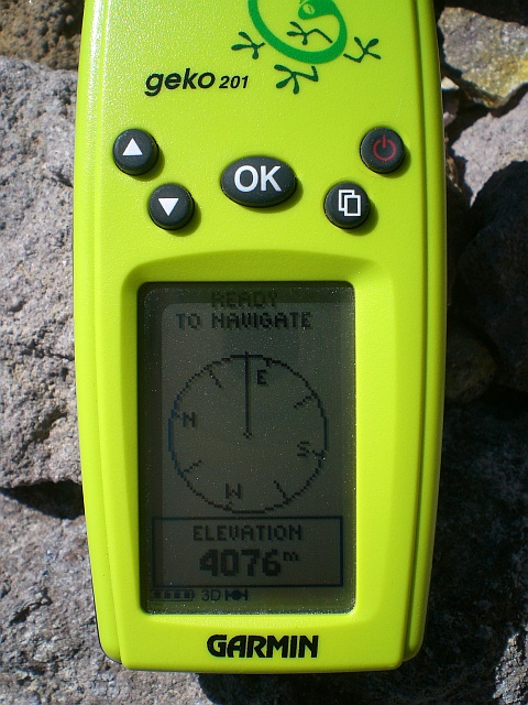 Ich mache ein Foto meines GPS-Geräts, um die erreichte Höhe zu dokumentieren, lasse dann die Vernunft siegen und mache mich schweren Herzens an den Abstieg.