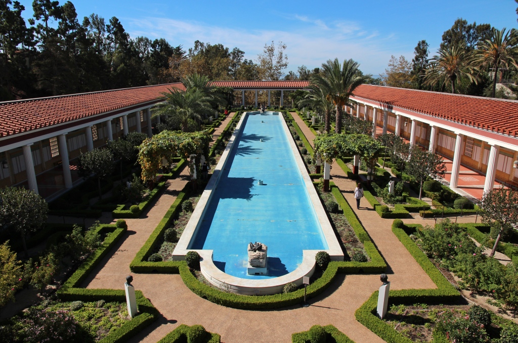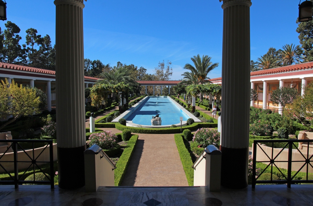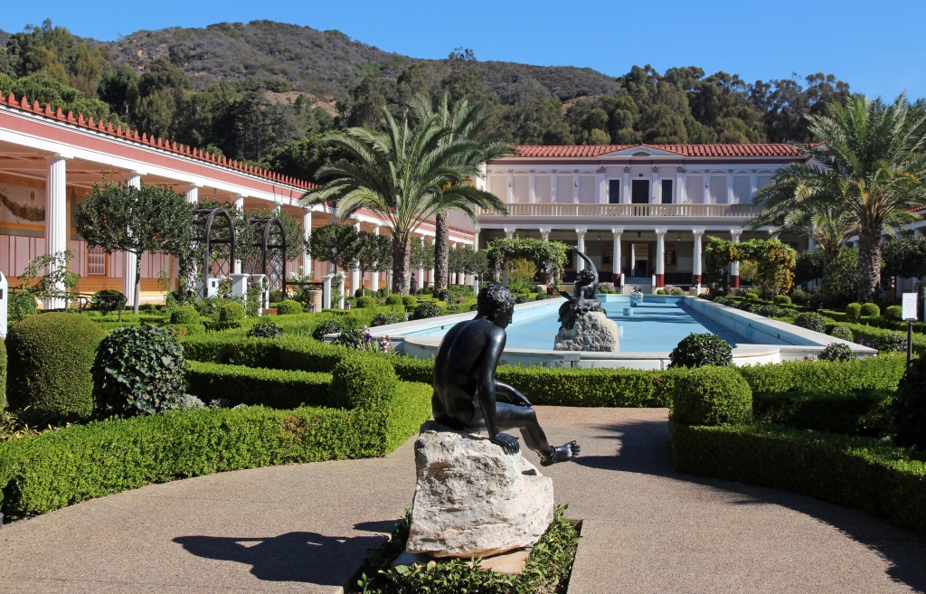 Der Eintritt ist zwar frei – dafür kostet das Parken schlappe 15 USD. Über mehrere Lifte und Weglein kommen wir zur Getty Villa, einem eindrucksvollen Gebäude, das einer pompejianischen Villa nachempfunden ist. Noch schöner als das Haus sind die Gärten – insbesondere ein Kräutergarten. Leider ist das große Wasserbecken wegen der andauernden Trockenheit nicht in Betrieb.
