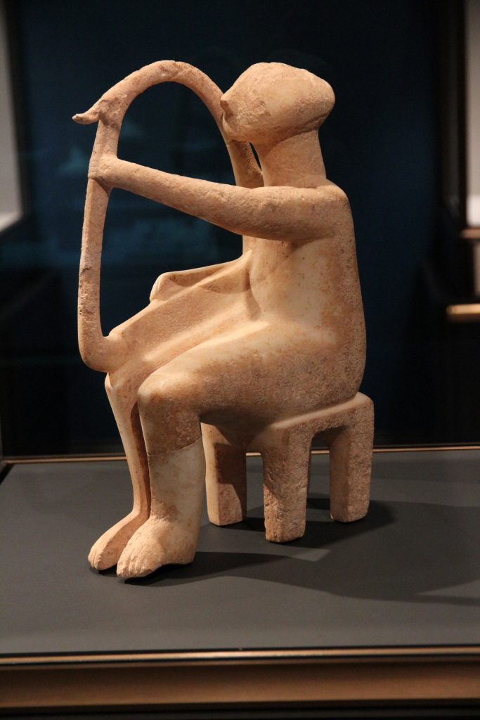 Getty Villa, kykladischer Harfenspieler aus Marmor (in Größe einer Nippesfigur), ca. 2500 v. Ch.