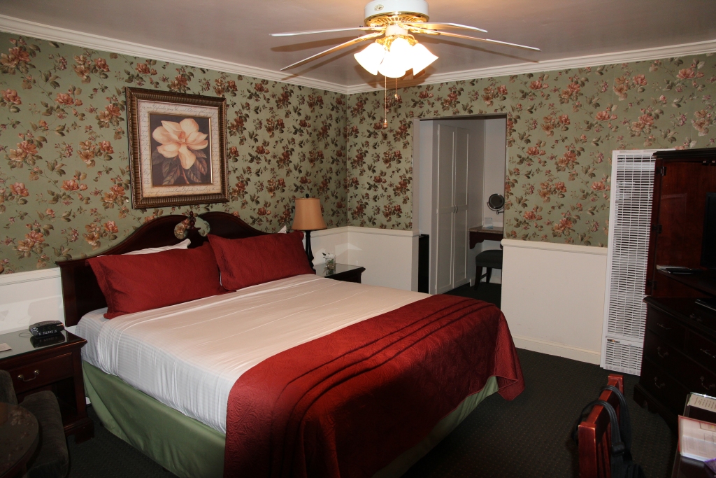 Nachdem wir den Weg wieder zurückgegangen sind, kommen wir dank Navi ohne Probleme zum Hotel. Wir haben wieder unser "Stammhotel" vorgebucht, das White Swan Inn in der Bush Street. Der Valet-Parkplatzt vor dem Haus ist diesmal auch frei (das letzte Mal mußten wir erst einmal um den Block kurven, um das Auto abschleppsicher zum Ausladen abstellen zu können). Wir bekommen wieder ein großes Zimmer mit Fireplace – diesmal zur Straße hinaus, aber trotzdem ruhig. Nachdem wir das Gepäck mit dem antiquierten Aufzug hinaufgeschafft haben, machen wir uns kurz frisch und gehen runter in den Souterrain zur "evening convention".