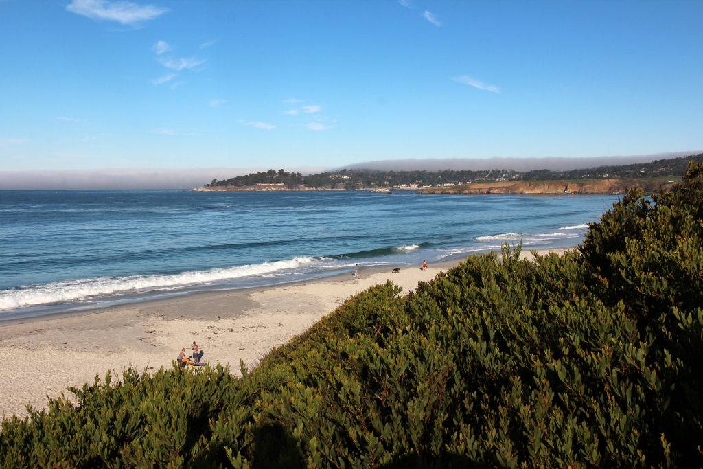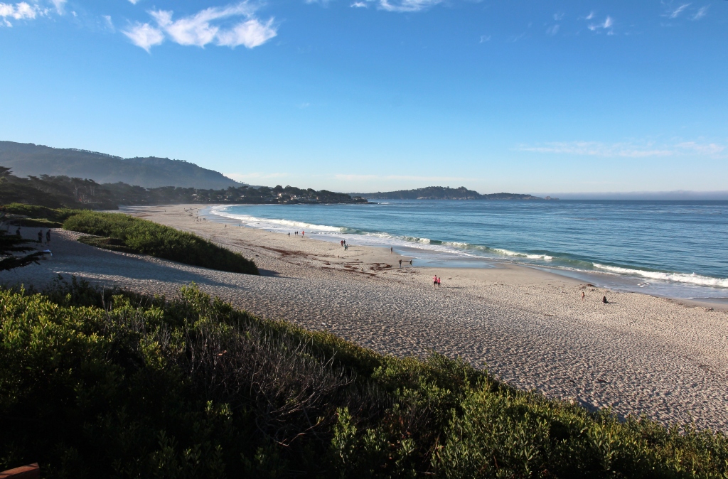 Bevor wir losfahren, wollen wir noch ein wenig Zeit vertrödeln. Wir entscheiden uns gegen das Aquarium in Monterey, das wir schon kennen, und gehen zunächst mal in Richtung Strand von Carmel. Dort gehen wir am Wasser entlang bis fast zum Ende der Bucht (und natürlich wieder zurück) – erholsames Faulenzen. Zurück im Hotel müssen wir erst mal die Füße waschen, dann können wir auschecken und  losfahren.