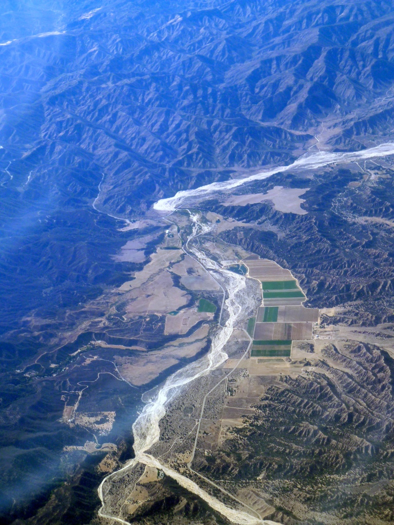 Die Sitzposition ist eigentlich immer gleich (hin rechts, zurück links) - aber die richtige Flugroute muß halt auch noch dazukommen. 2011 sind wir ebenfalls nach LA einen wesentlich "engeren" Bogen geflogen und hatten damit schöne Blicke auf Schottland, die Region nördlich vom Lake Superior, den Missouri River, Scottsbluff, St. George und die Mojave Wüste - dafür aber kaum welche auf LA (Bericht).