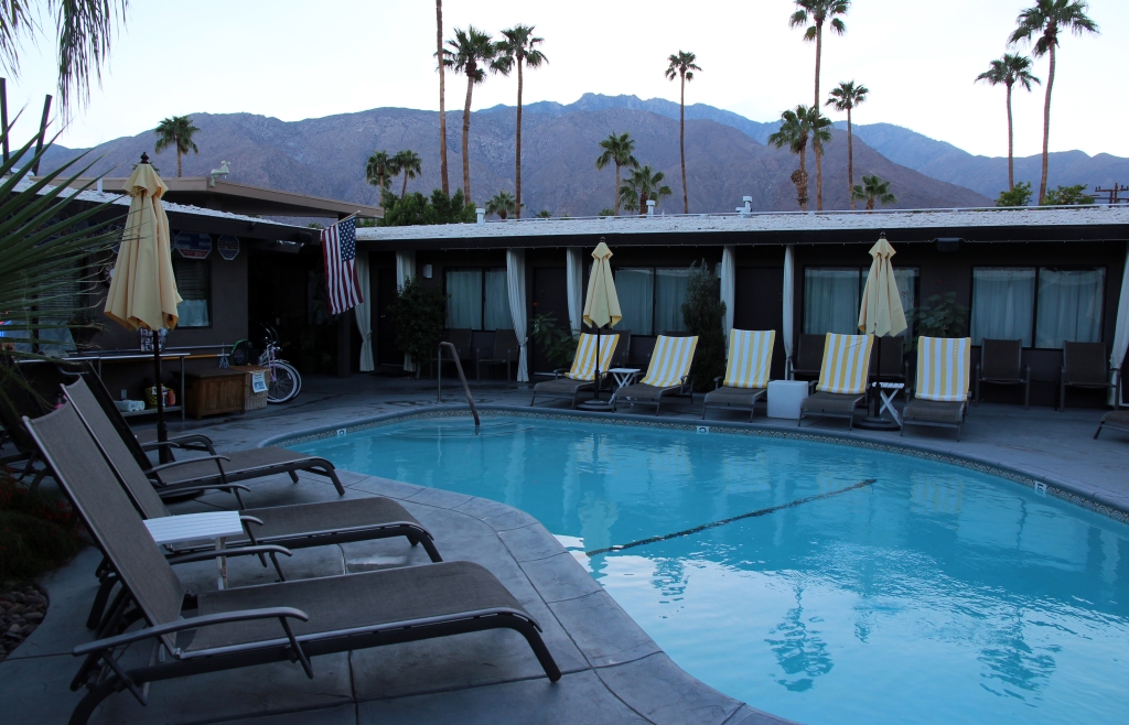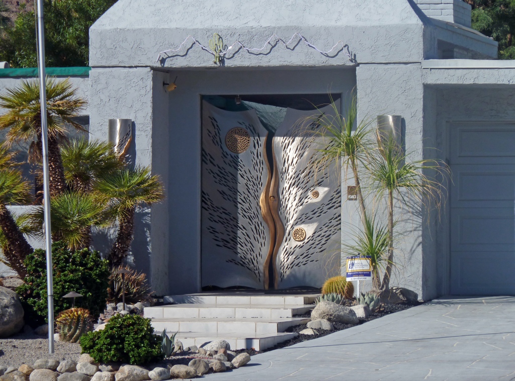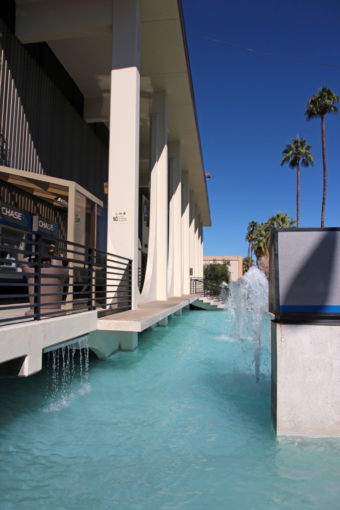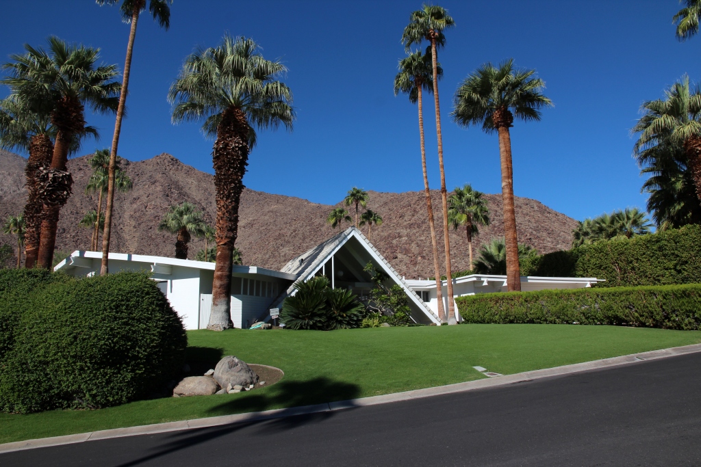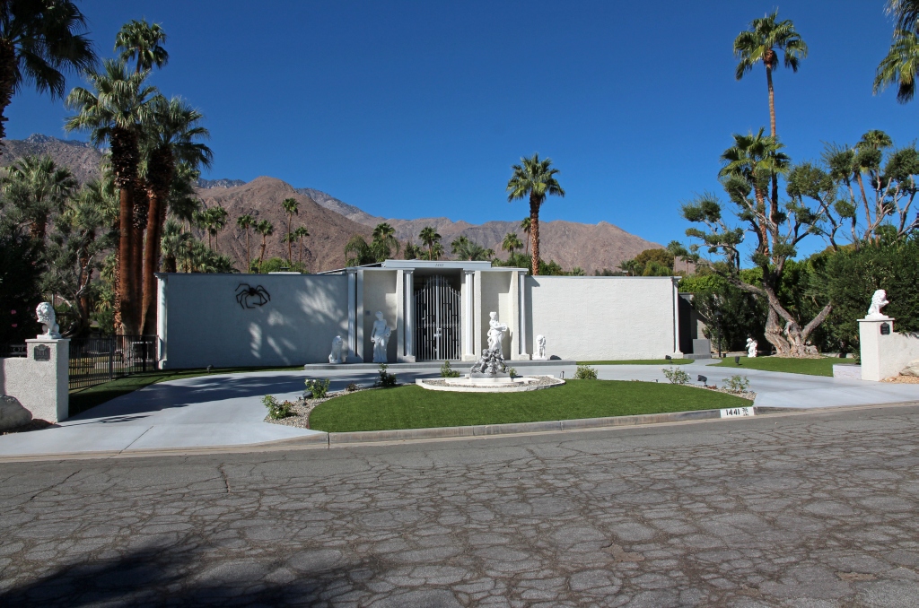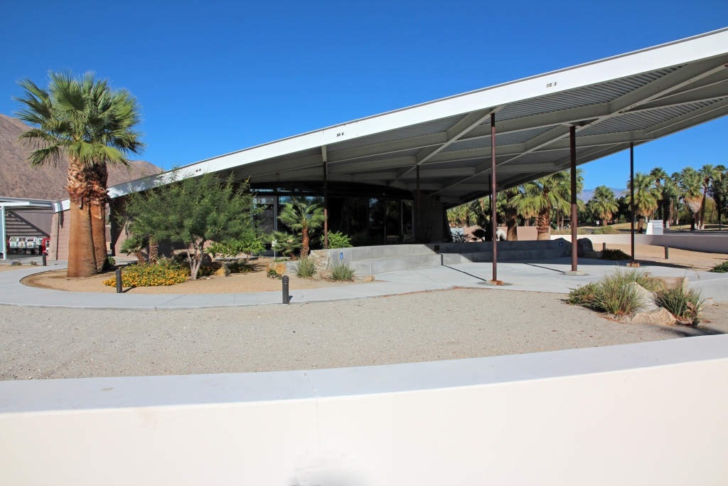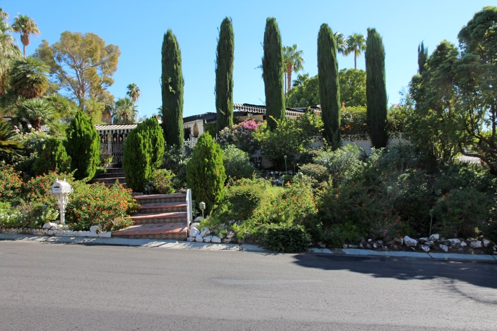 Viel Zeit haben wir ja nicht, aber es reicht für einen kurzen Rundgang, bei dem wir die Landschaft und Umgebung genießen. Besondere Aufmerksamkeit erweckt bei uns ein auf einem naheliegenden Felsen stehendes Haus. Wie wir später im Internet recherchieren, handelt es sich um das inzwischen zum Park gehörende House of Apache Fires. Es wurde anfangs der 1940er errichtet von Jack Frye - Pilot und Präsident von TWA - und seiner Frau Helen - die zuvor mit einem Vanderbildt verheiratet war. Nach der Scheidung blieb Helen Frye in dem seinerzeit noch nicht ganz fertiggestellten Haus, das später auf einigen Umwegen in den Besitz des Parks kam. Näheres zu dem Haus kann man hier nachlesen:
