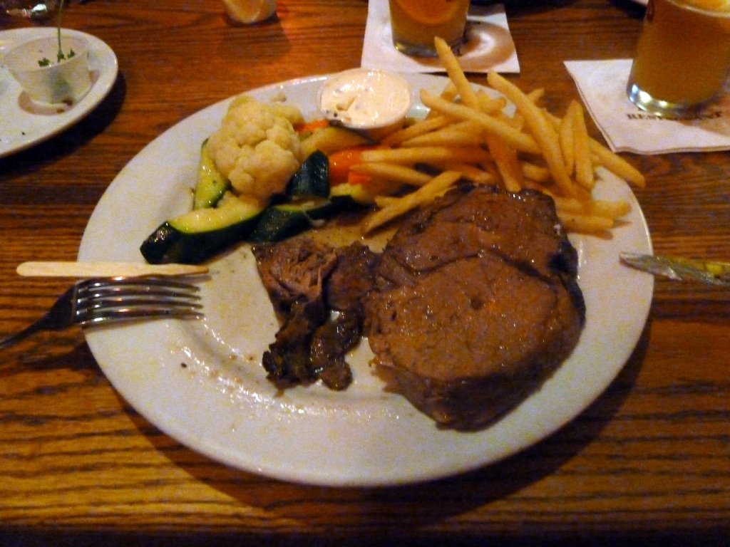 Dann fahren wir halt wieder zurück in den Westteil des Orts und kehren im reservierten Heartline Cafe ein. Der Parkplatz ist etwas duster und verwinkelt – das Restaurant aber hübsch dekoriert.. Wir bekommen einen schönen Platz im Patio, wo es tatsächlich noch warm genug ist. Wir beginnen mit einer leckeren Thai-Hühner-Kokossuppe. Marianne setzt dann mit einer Ente fort, ich mit einer Pecan crusted Trout von der Farm im Oak Creek Canyon. Dazu gibt es einen Weißwein aus Neuseeland. Insgesamt ein absolut empfehlenswertes Restaurant und nicht so überkandidelt wie das (inzwischen geschlossene) Hundred Rox, in dem wir vor drei Jahren waren.