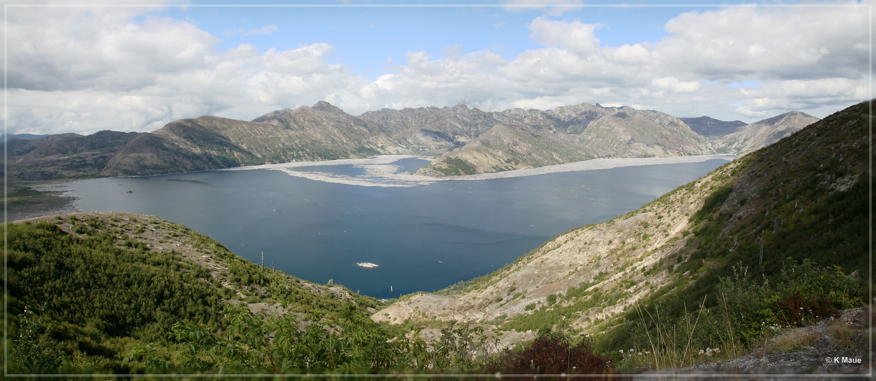 Wir fuhren noch mal nach Packwood rein, um uns in einem Coffee House einen Kaffee zu besorgen. Gegen 11 Uhr brachen wir dann auf zum Mount St. Helens. Wir nahmen den Highway 25 und 99. Es geht zunächst durch den Wald, vom Berg ist noch nichts zu sehen, aber schließlich kommen mehrere Viewpoints mit Blick auf den Vulkan, der durch seinen Ausbruch 1980 Berühmtheit erlangt hat, und den Spirit Lake.