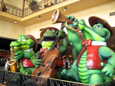Ich setze mich an einen Black Jack- Tisch, wo die für mich vermeintlich attraktivste Dealerin tätig ist  :engel1: , bestelle eine kostenlose Bloody Mary bei der vorbei stöckelnden Mardi Gras Dame - und gewinne mit dem von mir auf 5 Dollar aufgefetteten Einsatz nach zwei Black Jacks und auch sonst ein bisschen Glück letzten Endes 68 $. Die restlichen 16 Dollar (na klar hat die schlanke Geberin 2 $ bekommen) gleichen Sibyllas vorhersehbaren 50 Dollar- Verlust aus und werden an der ‚Crawfish’ Bar in 2 Coronas (Save water…) und eine Pina Colada umgesetzt. :D