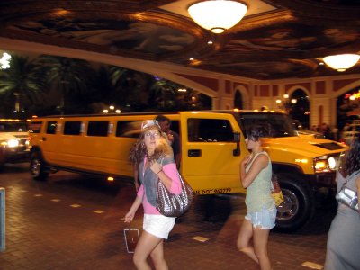 Dem Riesenhummer entstiegen, erstaunt Sibylla offensichtlich die eintreffenden Ladies  :lol: