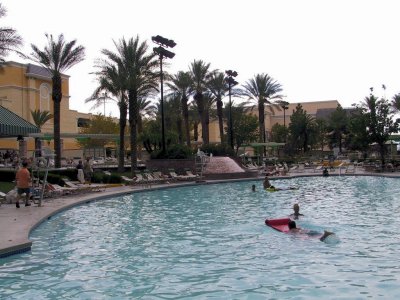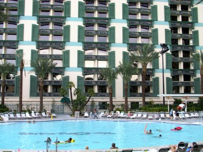 01:30 pm: Sibylla und Sigi sind zurück. Die Flüge der Family sind für UA 1554 um 11:30 pm reserviert. Also alles beim Alten geblieben, wie geplant. :D Anschließend haben die beiden noch eine kleine Einkaufstour gemacht. Die Kids wollen etwas essen, Sigi wird von ihnen zum Hot-Dog- Stand in der Halle geführt, Sibylla und ich haben keinen Hunger, das Frühstück war reichhaltig genug. Wir begeben uns an den Pool. Die mächtige Hitze ist auch im Schatten zu spüren und die Fußsohlen werden beim Gehen auf den Steinen leicht angebraten. :schwarz: