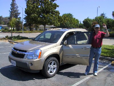 2:00: Ich throne im Auto wie der Burger King, stelle einen Country Music- Sender ein und wir begeben uns auf US 101 Richtung San Mateo Bridge. Da sagt meine Sibylla plötzlich: ‚Da steht Equinox,  kennst du dieses Modell?’. Ich beginne zu lachen, sie weiß nicht wieso. Ich erkläre, dass im Forum über dieses Auto Grundsatz- und ähnliche Diskussionen mit mehrseitigen threads geschrieben werden und ich habe das nicht einmal bemerkt, dass wir dieses Auto fahren. Na also, das kommt von lange warten, Ärger mit der Schalterlady und bilde mir ein, dass das hinten nicht draufsteht.  :wink: