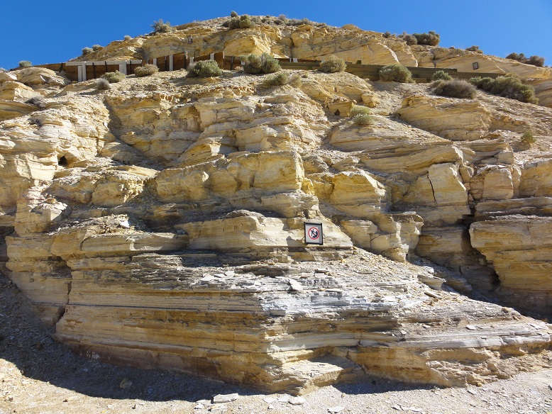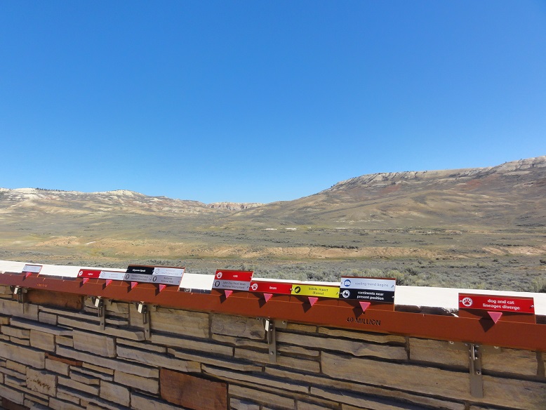 Auf dem Weg zum Visitor Center ist am Straßenrand ein Verlauf der Erdgeschichte markiert.