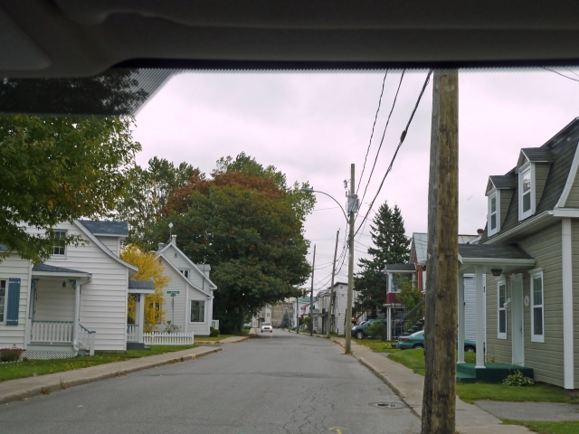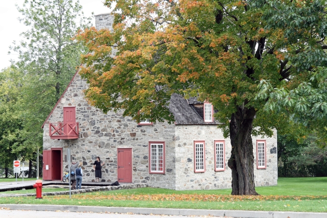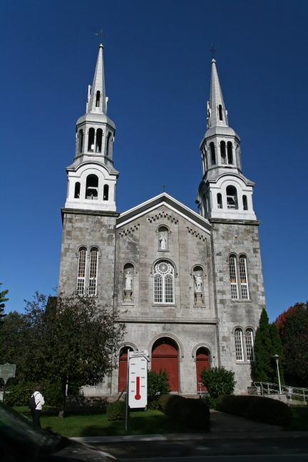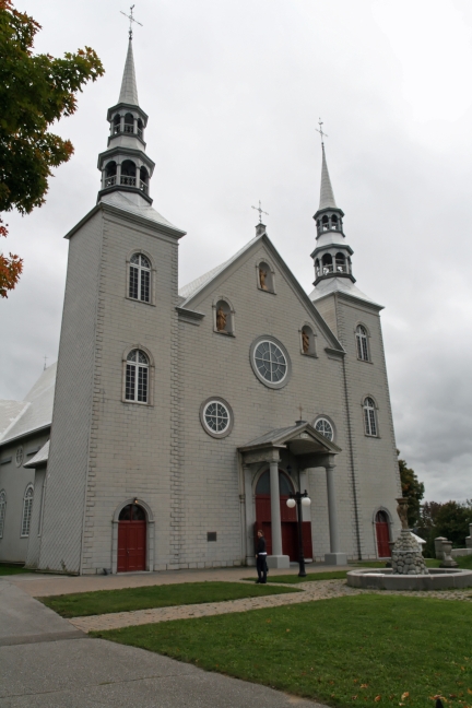 Insgesamt dauert es eine ganze Weile, bis wir mit Sack und Pack aus dem Zimmer sind und das Auto vom Valet-Service holen lassen können (was im übrigen recht schnell ging). Als wir dann endlich im Auto sitzen, benötigen wir noch eine Ewigkeit, um aus dem Weichfeld von Montreal herauszukommen, weil eine Straße durch Baustellen blockiert ist und die Kurven der Ausweichroute für die vor uns fahrenden und auch entgegenkommenden LKW kaum zu bewältigen sind. Wir wollen den Chemin du Roi fahren, wobei uns beide Navis ziemlich nerven, weil sie uns partout auf die Autobahn lotsen wollen. So fahren wir aber frei Schnauze die 138 Est bei durchaus regem Verkehr und schauen in ein paar Dörfern, die es hier noch in zahlreicher Art gibt, die Kirchen von außen an (innen geht nicht, da alle zugesperrt sind): St. Sulpice, Lavaltrie, Lanoraie, Louiseville. Ab und an haben wir auch einen schönen Blick auf den St.-Lorenz-Strom. Auch gibt es in den Ortschaften außer den Kirchen ganz hübsche Häuser. Insgesamt ein eher europäisches Ambiente.
