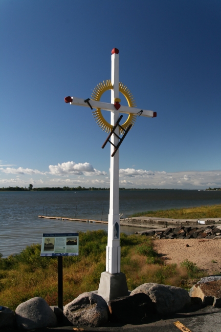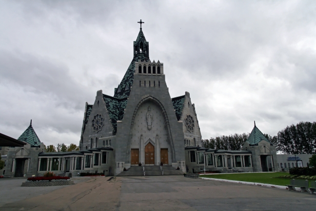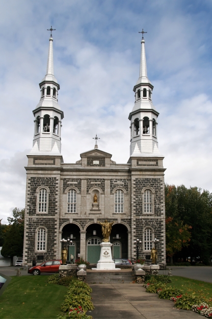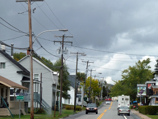 In einem Nachbarort von Trois Rivières nehmen wir den Chemin du Roy in Angriff. Er führt uns durch etliche Wohngebiete – anfangs stehen die Leitungsmasten quasi mitten im Asphalt – zunächst zu einer an Scheußlichkeit kaum zu überbietenden neuzeitlichen Wallfahrtskirche, die neben der außen recht hübschen, innen leider weniger ansprechenden ursprünglichen Kirche am Rande des Lorenz-Stroms hingestellt wurde.
