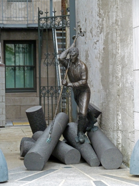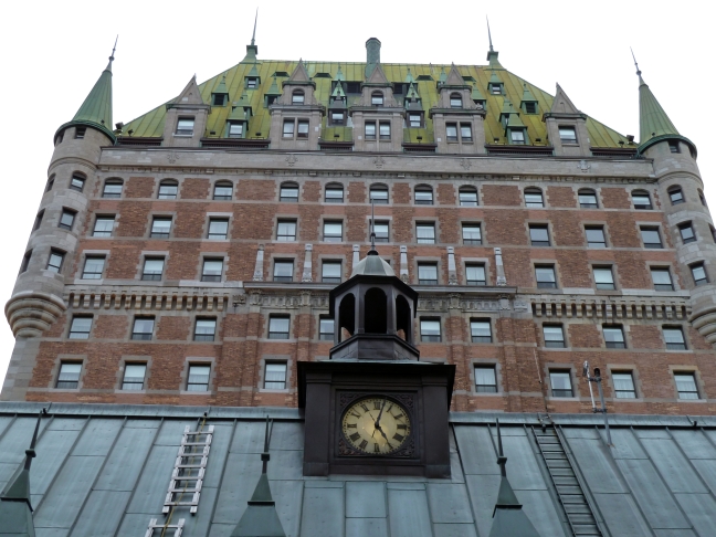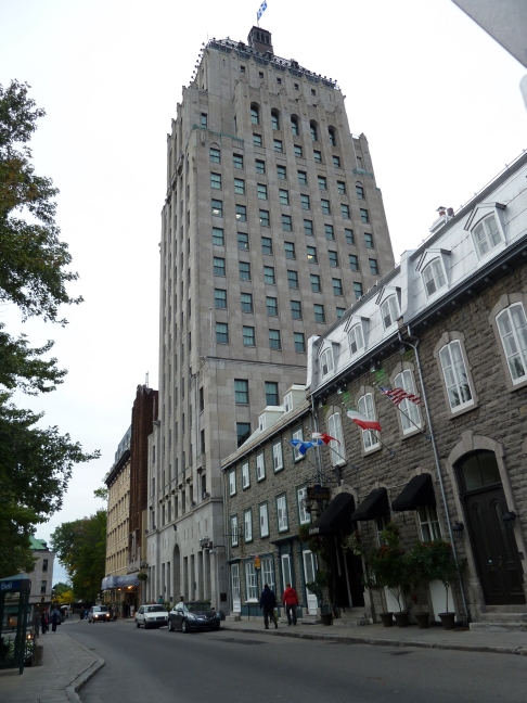 Im Hotel geben wir das Auto ab, lassen das gesamte Gepäck aufs Zimmer bringen und machen Kaffee mit Apfelkuchen. Nach einer Ruhepause machen wir uns auf den Weg in die Stadt. Wir gehen durch eiskalten pfiffigen Wind – gut, daß wir unsere Mützen dabeihaben (!) – kreuz und quer, zunächst in der Oberstadt u.a. Hotel de Ville (Rathaus), Hotel Frontenac, Kanonen, Einkaufsstraßen – Marianne bekommt eine schöne Schildmütze. Ganze Straßenzüge wirken wie aus französischen Mittelstädten importiert mit ein paar amerikanischen Wolkenkratzern dazwischen. Außerdem fallen in der Oberstadt die vielen Plastiken im öffentlichen Raum auf.